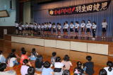 令和7年9月24日 加茂田上親善陸上大会 激励会 ![]() 6年生は、加茂田上親善陸上大会に羽生田小学校の代表として参加します。その6年生たちに全校で激励会を行いました。5年生が中心となって応援エールを送り、下級生がそれに続きました。体育館全体に響く大きな元気いっぱいな声の応援で、6年生たちの表情にも自信と笑顔が見られました。6年生からは、明日の抱負について発表をし、校長先生からは、「声援を力に変えましょう!」というお話がありました。子どもたちの士気は一層高まりました。明日の本番では、持てる力を全力で発揮してくれることを願っています。 |