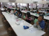 | 令和6年6月27日「竹あかりづくり(4年生)」 地元「あじさい塾」の方12名、保護者ボランティアの方3名のご協力の下、4年生が「竹あかり」づくりにチャレンジしました。竹の上に模様の付いた紙を貼り、模様に合わせて太さの違うドリルで穴を開けていきました。始めはドリルを持つ手が緊張していましたが、慣れてくると次々に穴を開けることができるようになりました。 完成した作品を見て、「思ったより簡単にできました」「灯りをつけるのがすごく待ち遠しいです」と感想を述べる子どもがいました。田上でしかできない貴重な体験ができ、子どもたちはとても喜んでいました。 |
